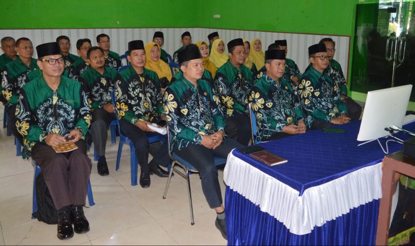 Kegiatan ini dihadiri secara langsung oleh Kepala Kantor Kemenag Kab. Muba H. Muhamad Makki, S.Ag. M.Pd.I beserta Kasubbag, Kasi, Kepala KUA dan Kepala Madrasah Negeri se-Kabupaten Musi Banyuasin.