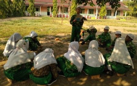 Untuk mengenali keberagaman Indonesia, wali kelas 6a Madrasah Ibtidaiyah Negeri (MIN) 2 Musi Banyuasin mengajak siswanya berdogeng di luar kelas, Kamis (10/10).