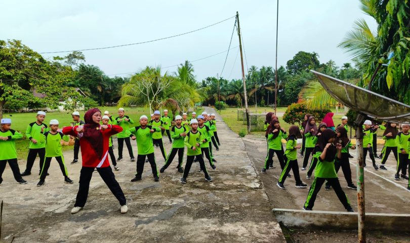 Senam rutin dilaksanakan di halaman madrasah dengan gerakan yang sederhana namun penuh semangat. Guru olahraga Heni Herda memandu setiap gerakan dengan jelas dan energik sehingga peserta dapat mengikuti senam dengan baik dan penuh keceriaan.